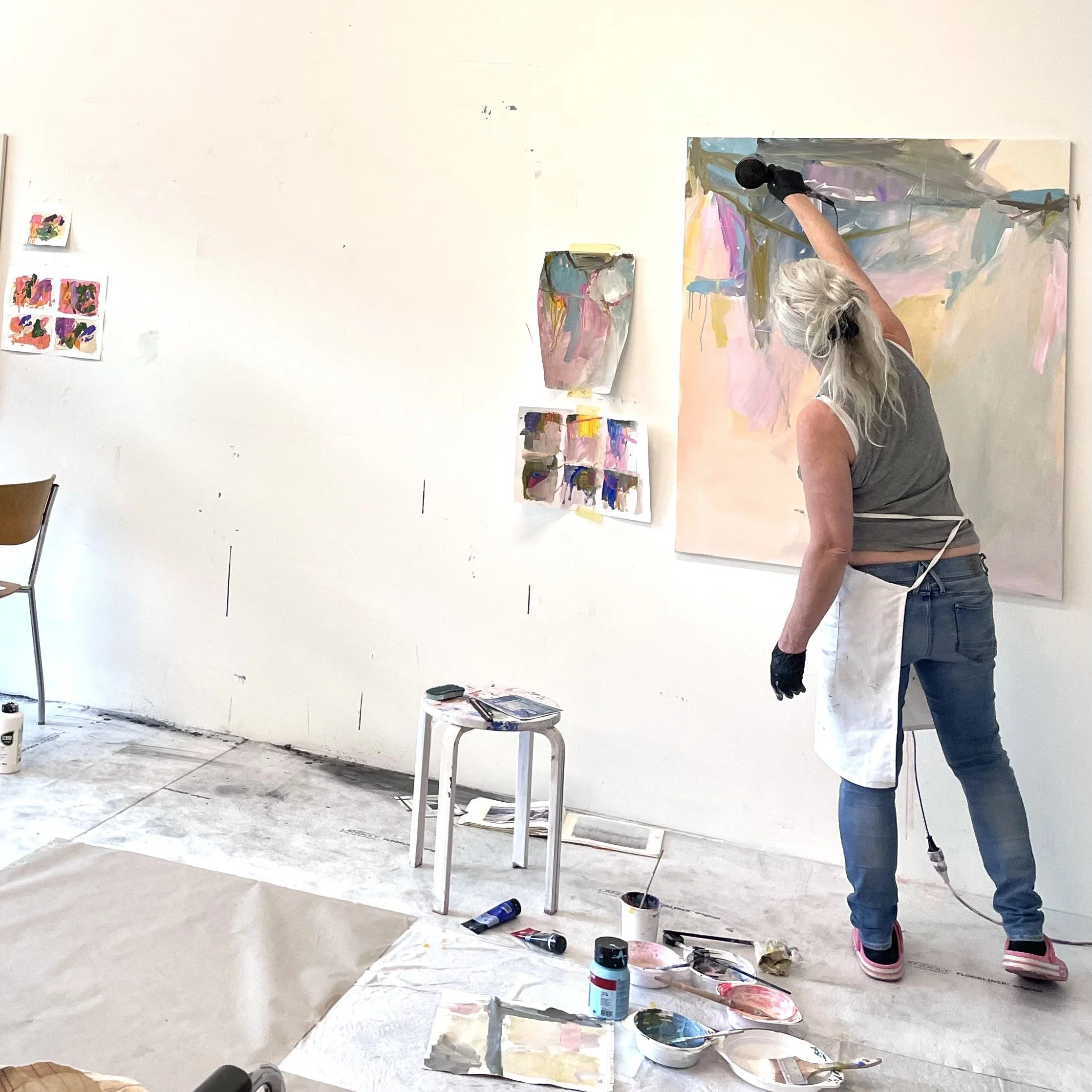 The canvas begins in dialogue with natural elements: the shifting blues of glacial ice, the muted tones of stone, the quiet weight of a horizon line. Through layers of transparent and opaque color, brushstrokes, and delicate drips, my abstract landscapes evoke both vastness and intimacy — spaces where the viewer can inhabit stillness and motion at once.