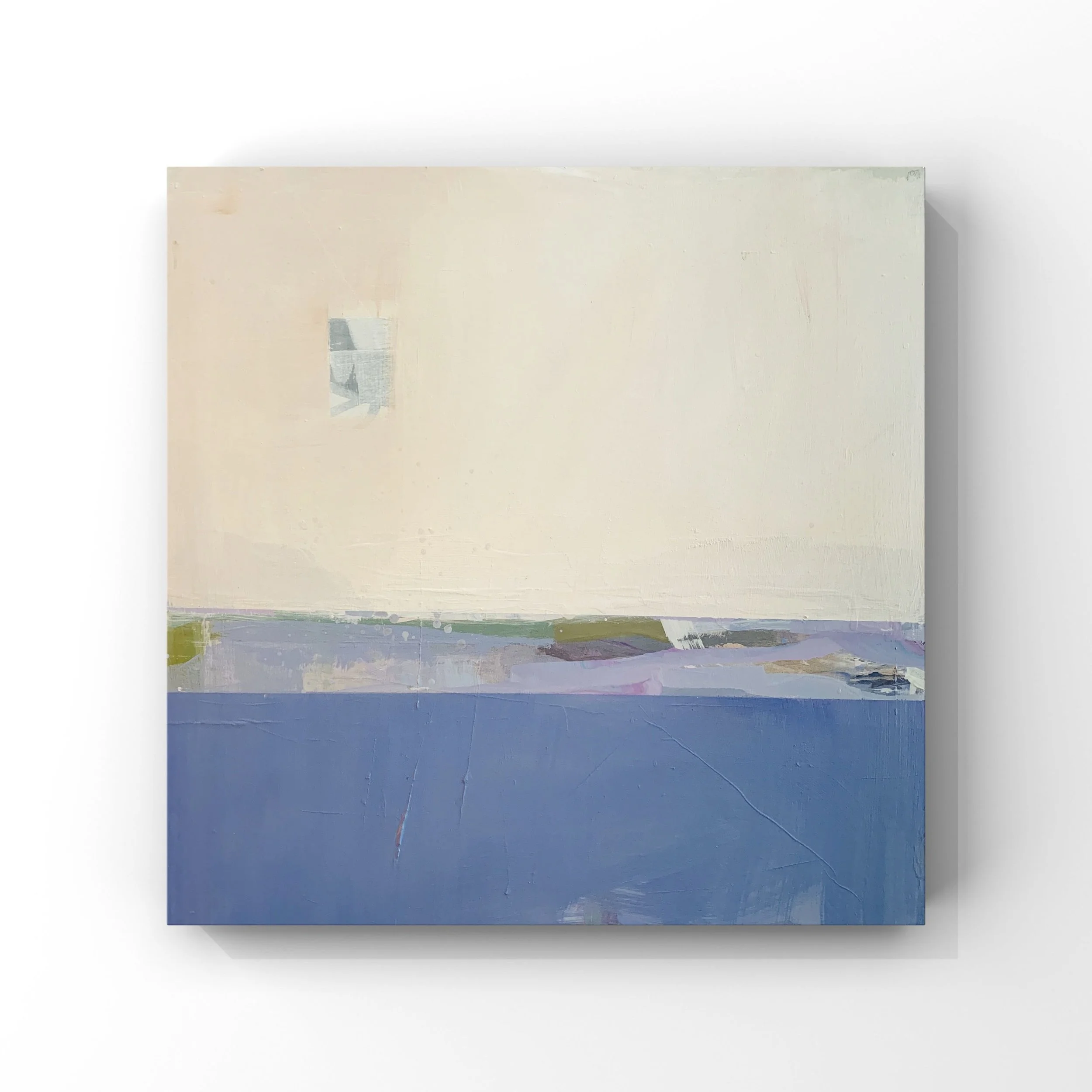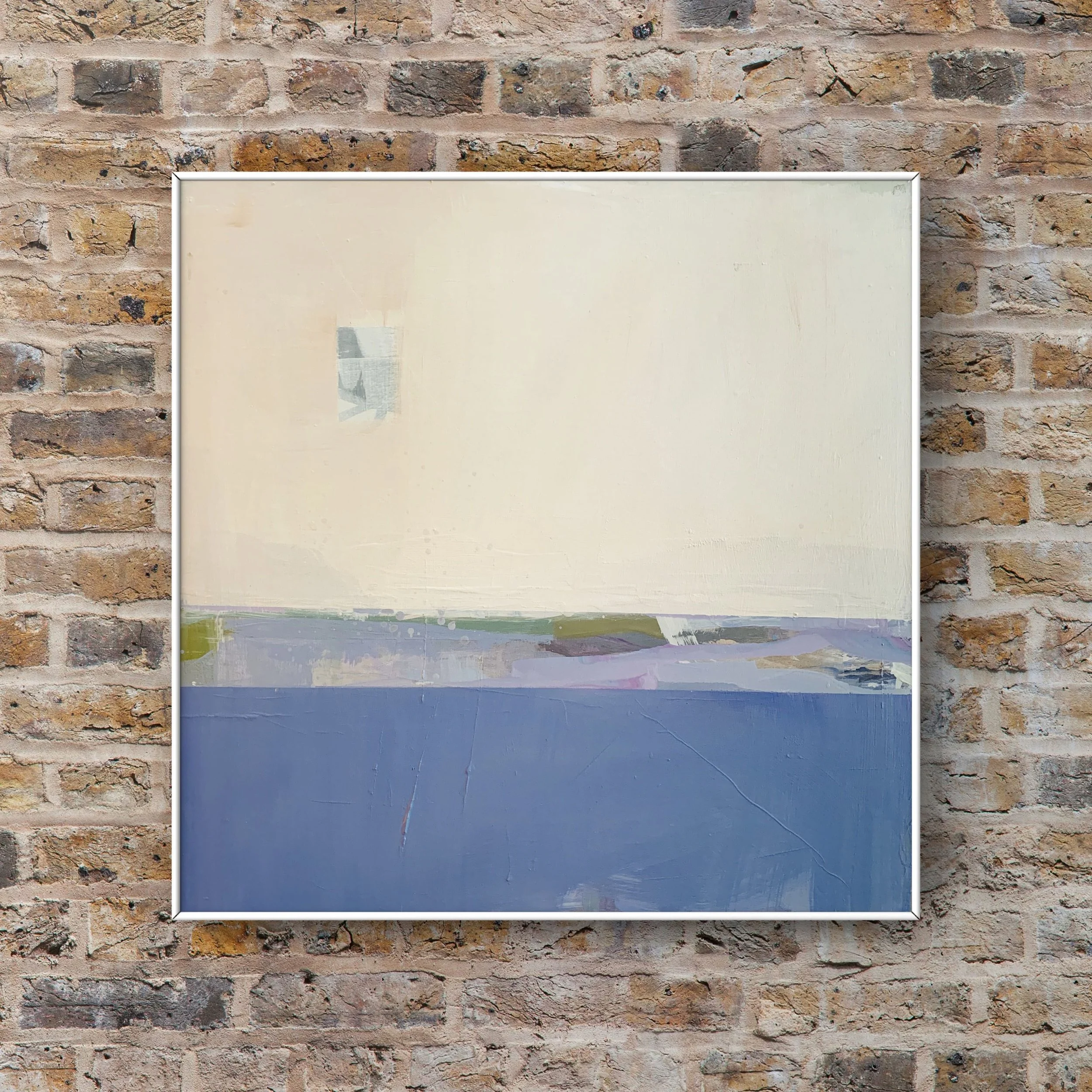 Acrylic and ink on wood panel. Floating white frame, ready to hang